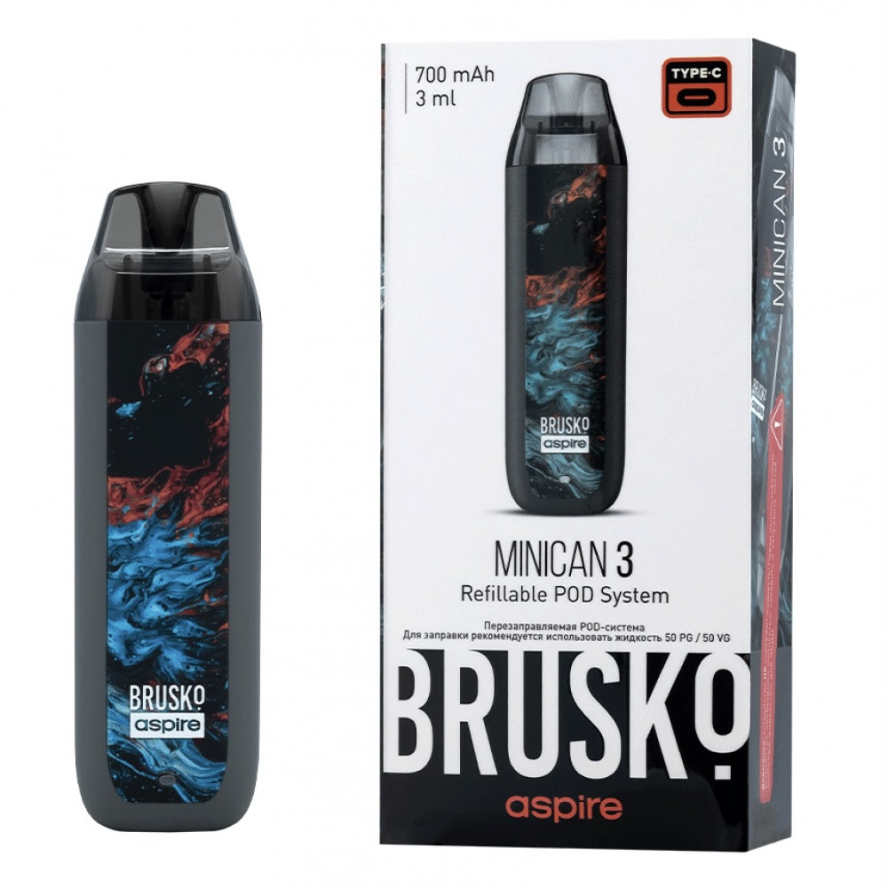 Перезаправляемая Под-Система Бруско Миникан 3 (Brusko Minican 3) 700 mah, Серый Флюид - купить в Саках